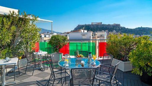 Attalos Hotel , is a historic hotel with an established reputation as "Your home away from home in the heart of Athens ". Just 100 meters from Monastiraki Metro Station and less than a 10 minutes’ walk from Syntagma Square , Attalos Hotel offers rooms with all necessary facilities and excellent friendly service. Attalos Hotel in buzzing Psirri neighborhood , offers a central, yet quiet base for exploring the city of Athens. It is within easy walking distance from archaeological sites , the flea market and other points of interest. Our rooftop bar offers a breathtaking Acropolis view. Free Wi-Fi and a business center are available. All rooms are air-conditioned with soundproof windows, direct-dial telephone and satellite flat-screen TV. The en suite bathrooms with shower include hairdryers and amenities . Coffee-Tea making facilities , iron-iron board are provided upon request . Many balcony rooms also include an outlook of the Acropolis or Lycabettus Hill. Guests can enjoy cool evenings at the hotel’s roof garden which features a view of the Acropolis, or relax with a glass of ouzo and the sounds of Athens. The shopping center of Ermou is 5 minutes’ walk away, while the metro offers quick access to the port and the airport, as well as to all the city’s attractions. Families particularly like the location — they rated it 9.7 for a stay with kids.