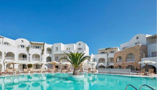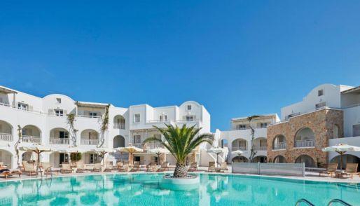 Located within the magnificent Kamari area of Santorini 50 metres from a black sandy beach, the fully renovated Aegean Plaza Hotel awaits you offering traditional interiors with current elements. The hotel was built between 2001 and 2002 incorporating the typical and unique Cycladic architecture, combined with the contemporary conveniences and strict specifications it provides all that is needed in order to satisfy even the most demanding guest. Upon entering the hotel you are immediately brought into a luxurious world. The building houses smoothly styled rooms, elegant and comfortable accommodation and excellent facilities, such as a stunning outdoor swimming pool surrounded by the rooms which features a poolside bar, sporting activities including tennis and a fitness centre. This hotel offers the perfect environment for a stay on the beautiful island of Santorini. Families particularly like the location — they rated it 9.7 for a stay with kids.