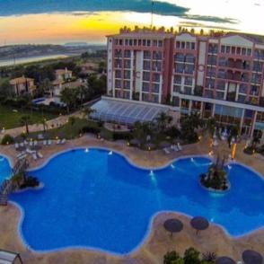 The modern Hotel Bonalba Alicante is set in a peaceful area of Mutxamel, just 7.9 km from Campello’s beaches and a 10-minute drive from Alicante city centre and its port. Surrounded by lush tropical gardens, the hotel features a large outdoor pool and an impressive Wellness & Beauty Centre. (Please check opening dates and times directly with the hotel.) Rooms The hotel’s spacious rooms come with a private terrace, flat-screen satellite TV and free wired internet access, offering comfort and convenience for a relaxing stay. Wellness & Beauty Centre Guests can unwind in the wellness area, which includes a heated indoor pool with multiple hydro jets, leg pressure jets, a foot-pressure platform, sauna, Turkish bath, and contrast showers. A range of beauty treatments and relaxing massages is also available for those looking to indulge. The hotel offers a selection of experience packages, combining gastronomic dinners, spa access, and various wellness treatments—perfect for a complete getaway. Entertainment Children's entertainment and performances run daily until 15 September, with family-friendly shows every evening at 22:30. During the summer, guests can also enjoy a chill-out zone and a full entertainment programme designed for both adults and children. Location & Transport With easy access to the AP-7 motorway, the hotel is just a 15-minute drive from San Juan Beach and approximately 20 minutes from Alicante Airport, making it a convenient choice for travellers.