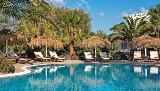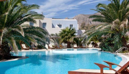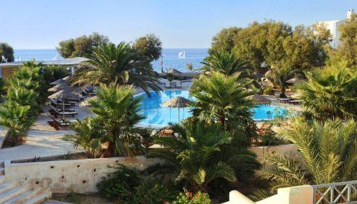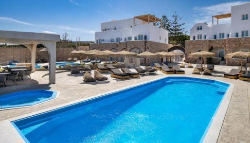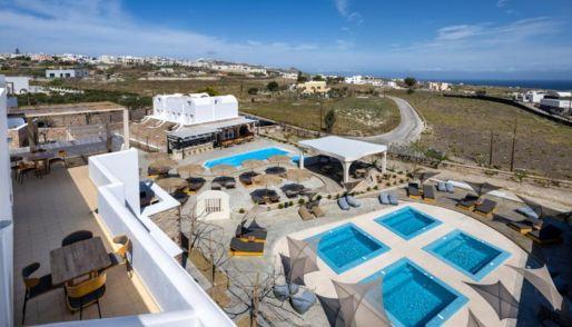 Atlantis Beach Villa enjoys a direct beachfront location on the unique black sandy beach of Perivolos. The hotel, built according to the traditional Cycladic architecture, disposes 33 rooms and studios. Among the various amenities offered, Atlantis Beach Villa provides a swimming pool with a separate children's area, sun-beds and pool bar. Pool towels are provided. Wi-Fi internet is available in the entire complex and is free of charge. Although at a quiet location, Atlantis is conveniently close to restaurants, taverns and bars. The center of Perissa is just a 10-minute walk away and Santorini’s Water Park is within easy reach, only 600 metres from the hotel. Families particularly like the location — they rated it 9.6 for a stay with kids.