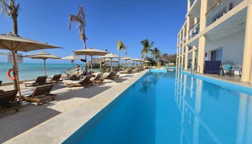 Reef & Beach Resort – Spa Jambiani: A Tranquil Beachfront Escape in Zanzibar Beachfront Paradise: Nestled along the pristine white sands of Jambiani Beach, Reef & Beach Resort – Spa Jambiani offers breathtaking views of the Indian Ocean. The resort features a private jetty extending into the sea, where guests can unwind at the lounge and bar while enjoying ocean breezes and sunset views. Comfortable Accommodations: The spacious, air-conditioned rooms are decorated with traditional Zanzibar-style furnishings and equipped with modern comforts including an electric kettle and private ensuite bathroom with a shower. Many rooms feature ocean or garden views, creating a serene tropical ambiance. Relaxation & Wellness: Guests can lounge by the pool, sunbathe on the beach, or indulge in soothing spa treatments and massages designed for relaxation and rejuvenation. Dining Experience: The resort’s restaurant serves a delightful mix of African, Indian, and fresh seafood cuisine, prepared with local ingredients. Guests can also enjoy drinks at the jetty bar, offering panoramic sea views. Convenient Location: Ideally located just 7 km from Jambiani village and 32 km from Jozani Forest, the resort is 60 km from Stone Town and 62 km from Zanzibar International Airport, making it easily accessible while maintaining a peaceful coastal setting. Family-Friendly Retreat: Families particularly love the resort’s beachfront location, relaxing atmosphere, and welcoming staff — they rated it 8.7 for a stay with kids. Reef & Beach Resort – Spa Jambiani is the perfect choice for travelers seeking relaxation, culture, and coastal charm in the heart of Zanzibar’s tropical paradise.