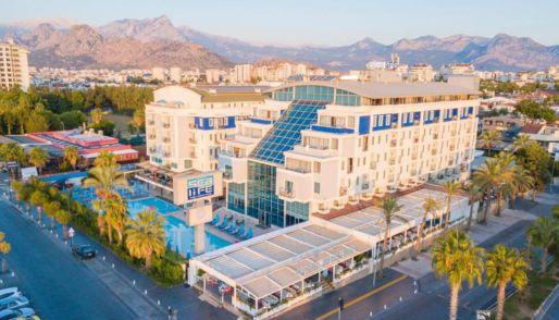 Family Fun and Seaside Luxury at Sealife Family Resort Hotel Perfectly situated directly across the blue-flagged Konyaaltı Beach, Sealife Family Resort Hotel is a vibrant, all-encompassing retreat offering endless fun for all ages. With its multiple swimming pools with slides, spa centre, and exciting water activities like diving and snorkelling, this resort guarantees an unforgettable Antalya getaway. Stylish & Comfortable Rooms Each air-conditioned room features modern furnishings, soft, soothing tones, and a private balcony — most offering breathtaking views of the Mediterranean Sea. Amenities include satellite TV and contemporary comforts designed to make every stay relaxing and enjoyable. Dining & Entertainment Guests can savour a rich variety of cuisines at the hotel’s restaurants, including Ottoman specialities and freshly prepared seafood dishes. Several bars, a bistro bar, and an in-house disco club provide plenty of options for socializing and evening entertainment. Relaxation & Activities An underpass connects directly to the beach, making seaside access safe and convenient. The hotel’s professional kids’ club, tennis courts, sauna, and traditional Turkish bath ensure both relaxation and recreation for the whole family. Located just 10 km from Antalya Old Town, the hotel is close to popular attractions such as 5M Migros Shopping Mall, Antalya Aquarium (3 km), and MarkAntalya Mall (9 km). Antalya Airport is only a 30-minute drive away, and free private parking and airport shuttle services are available. Families especially love the location, rating it 9.5 for a stay with children.